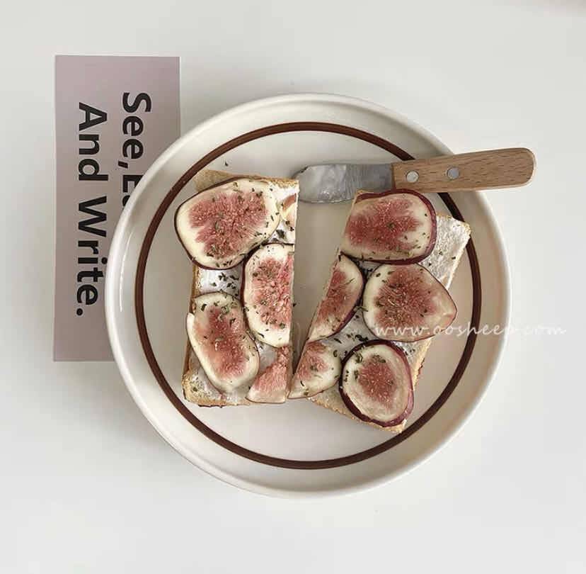 香菜盘子 日式复古餐具棕色线条早餐盘