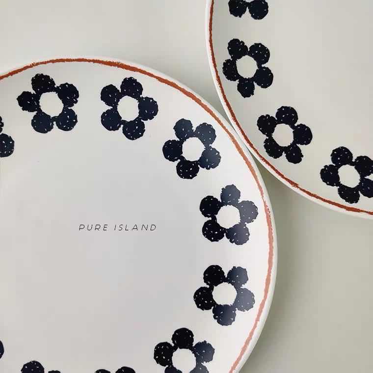 香菜盘子 田园风复古陶瓷盘花边甜品盘子早餐盘