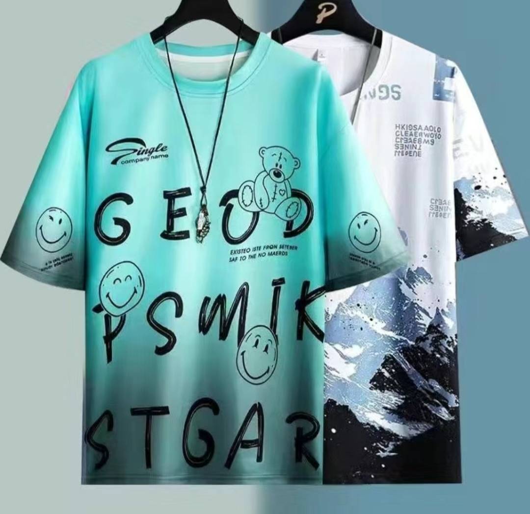 冰丝感短袖T恤男士夏季薄款韩版潮流百搭宽松半袖体恤衫男上衣12
