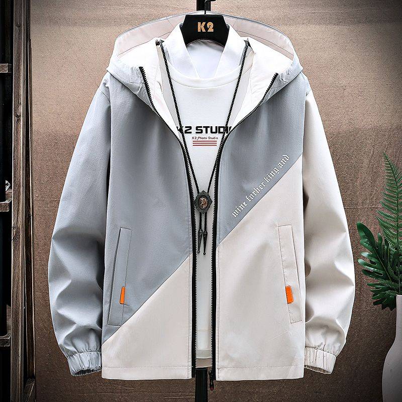 外套男春秋款大学生工装夹克男款韩版青少年潮流宽松连帽夹克男士