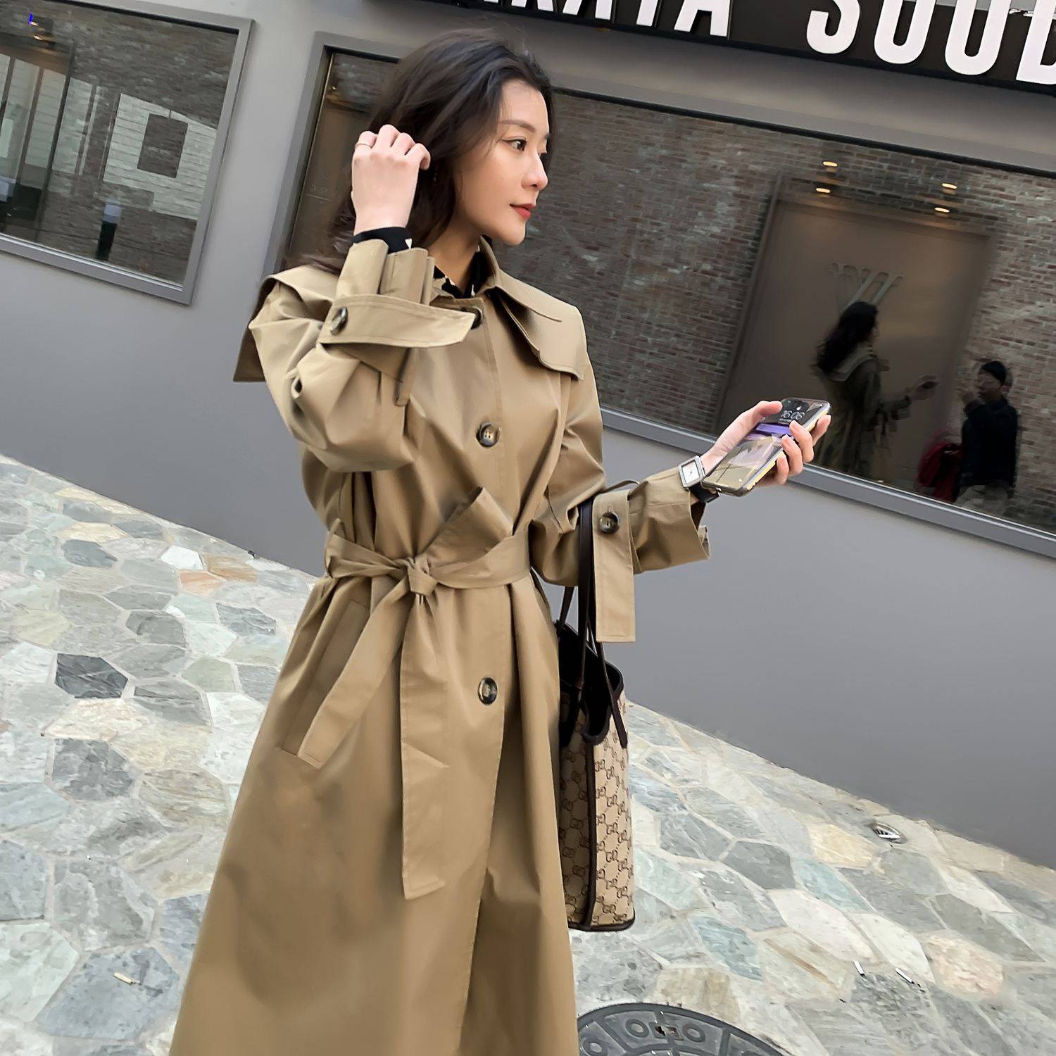 风衣女款2023秋季新款气质流行卡其色高级感大衣中长款英伦风外套
