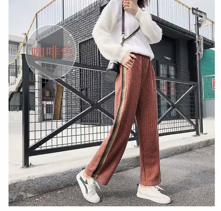 拍韩版新款高腰阔腿裤女时尚百搭显瘦阔脚侧边开叉九分裤潮