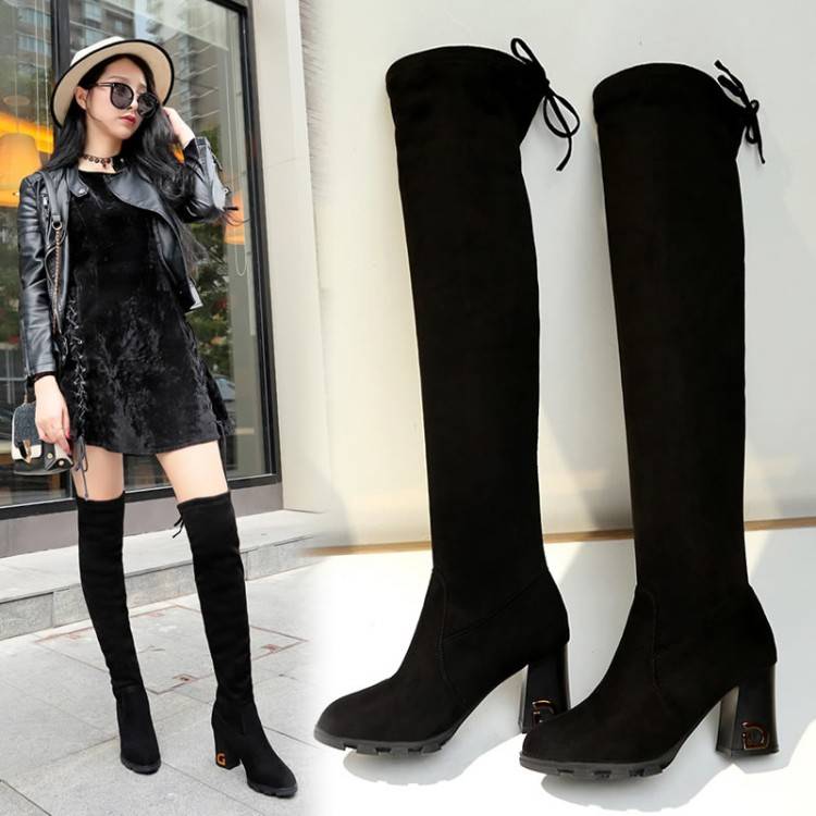 2018秋冬新款百搭韩版甜美高跟长筒靴保暖