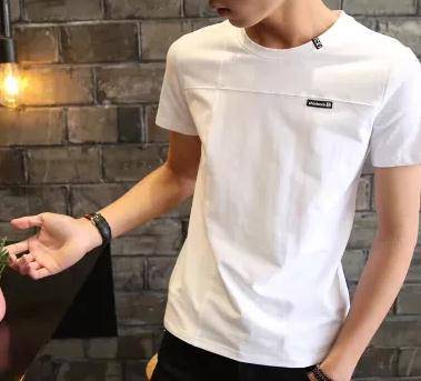 2018长袖男士秋季t恤圆领韩版潮流修身打底衫白色上衣体恤服装潮
