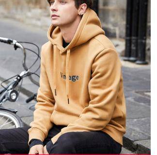 加绒男卫衣连帽春秋款韩版学生刺绣外套潮流套头加厚抓绒男生帽衫