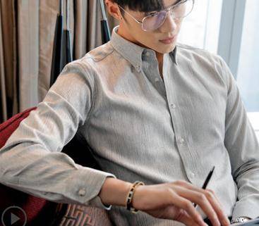 男士衬衣2018秋季寸衣潮流休闲弹力港风青年韩版修身条纹长袖衬衫