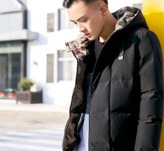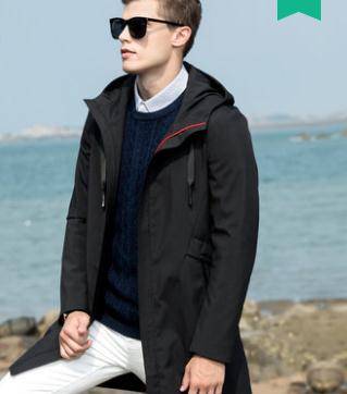 2018秋季新款黑色连帽中长款男士休闲外套春秋款