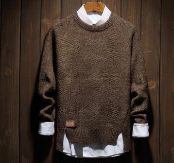 冬季男士圆领纯色加厚毛衣青年修身韩版线衣男装休闲保暖针织衫潮