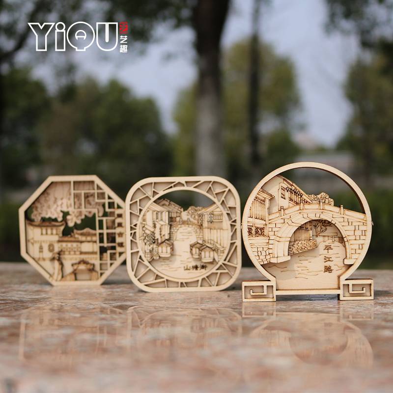 苏州文创木质冰箱贴 城市旅游纪念品 伴手礼创意木刻镂空园林景区