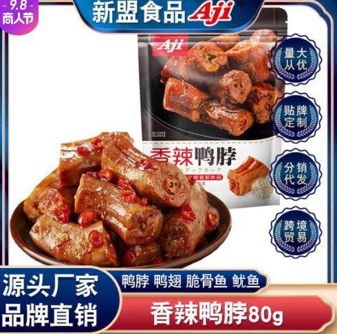 Aji香辣鸭脖鸭翅鱿鱼脆骨鱼仔麻辣零食网红小吃休闲食品即食卤味