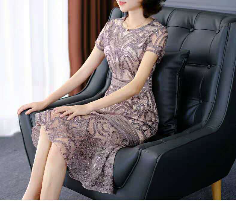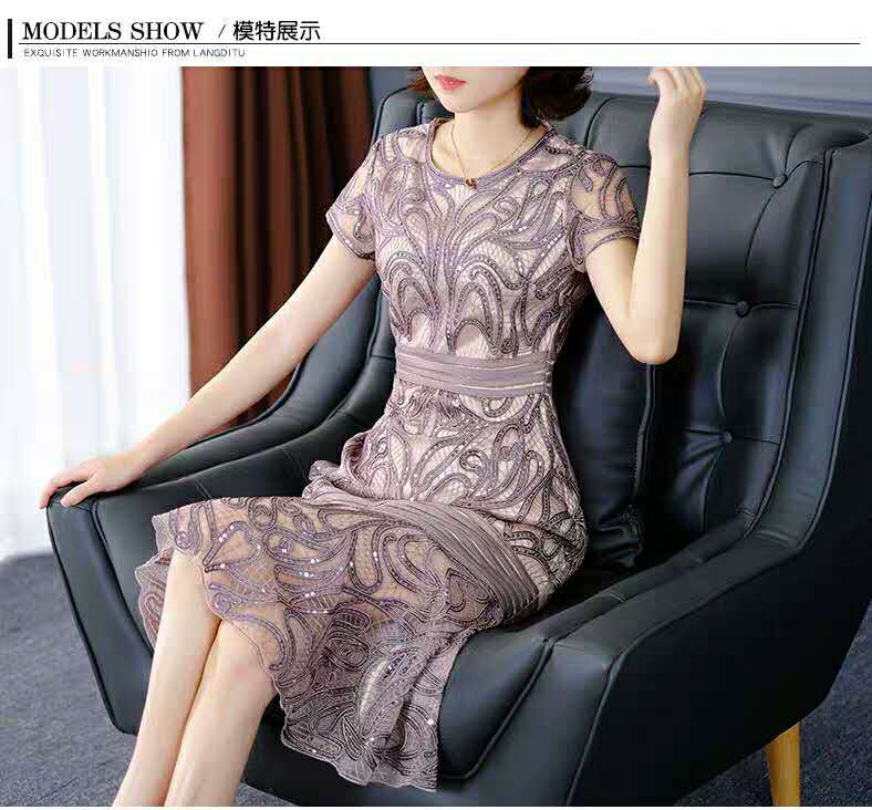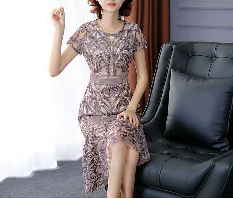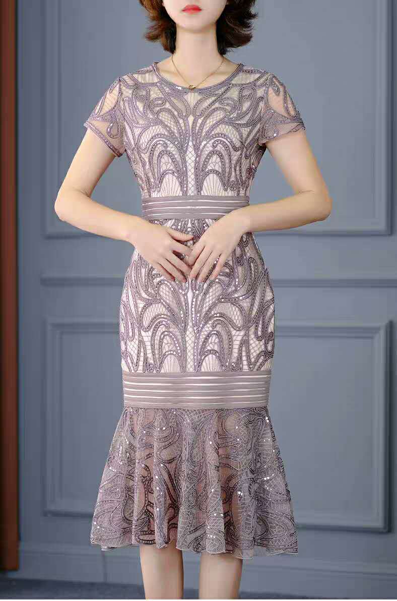高贵气质妈妈短袖晚礼服参加宴会欧洲站时尚修身大码连衣裙鱼尾裙
