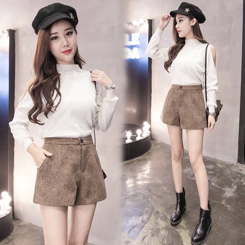 2018新品女装外穿学生宽松阔腿裤韩版a字毛呢短裤女秋冬款