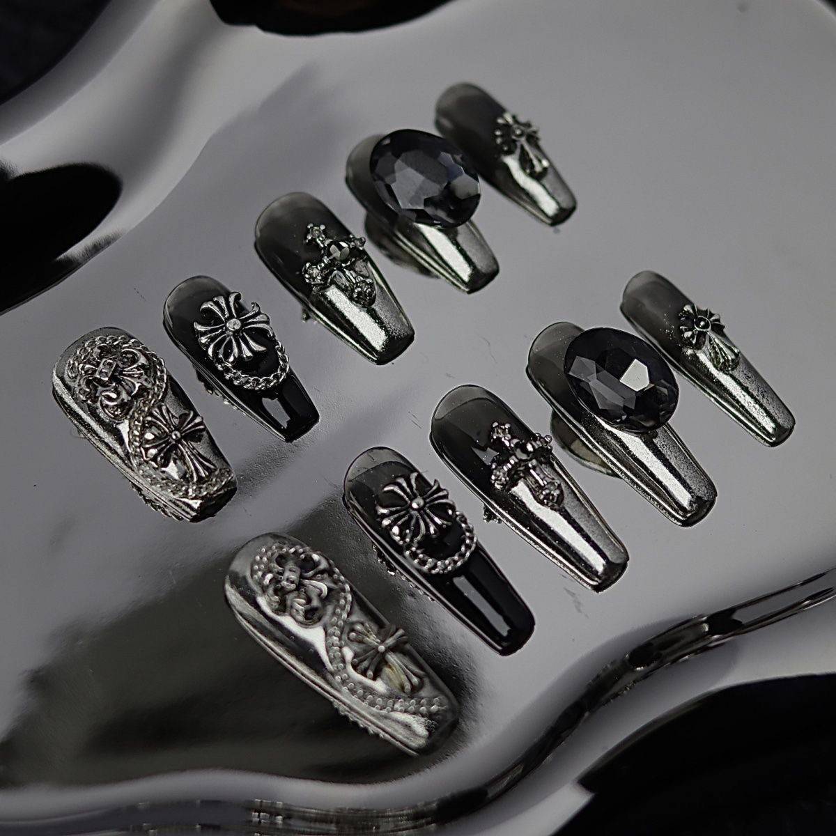 甲片网红黑夜合金美甲饰品宝石穿戴爆款指甲辣妹y2k手工贴片长t