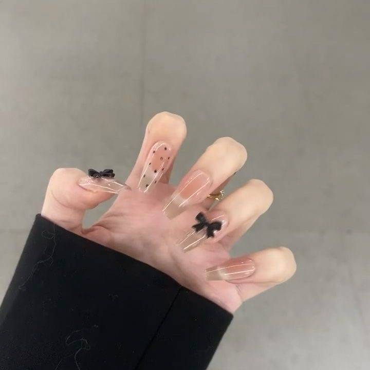 小红书爆款冰透猫眼法式蝴蝶结波点夏季裸色新款纯手工美甲穿戴甲