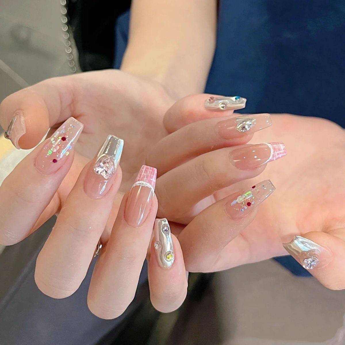 手工彩色糖果穿戴甲片七彩宝石花园冰淇淋色法式手工成品定制甲片