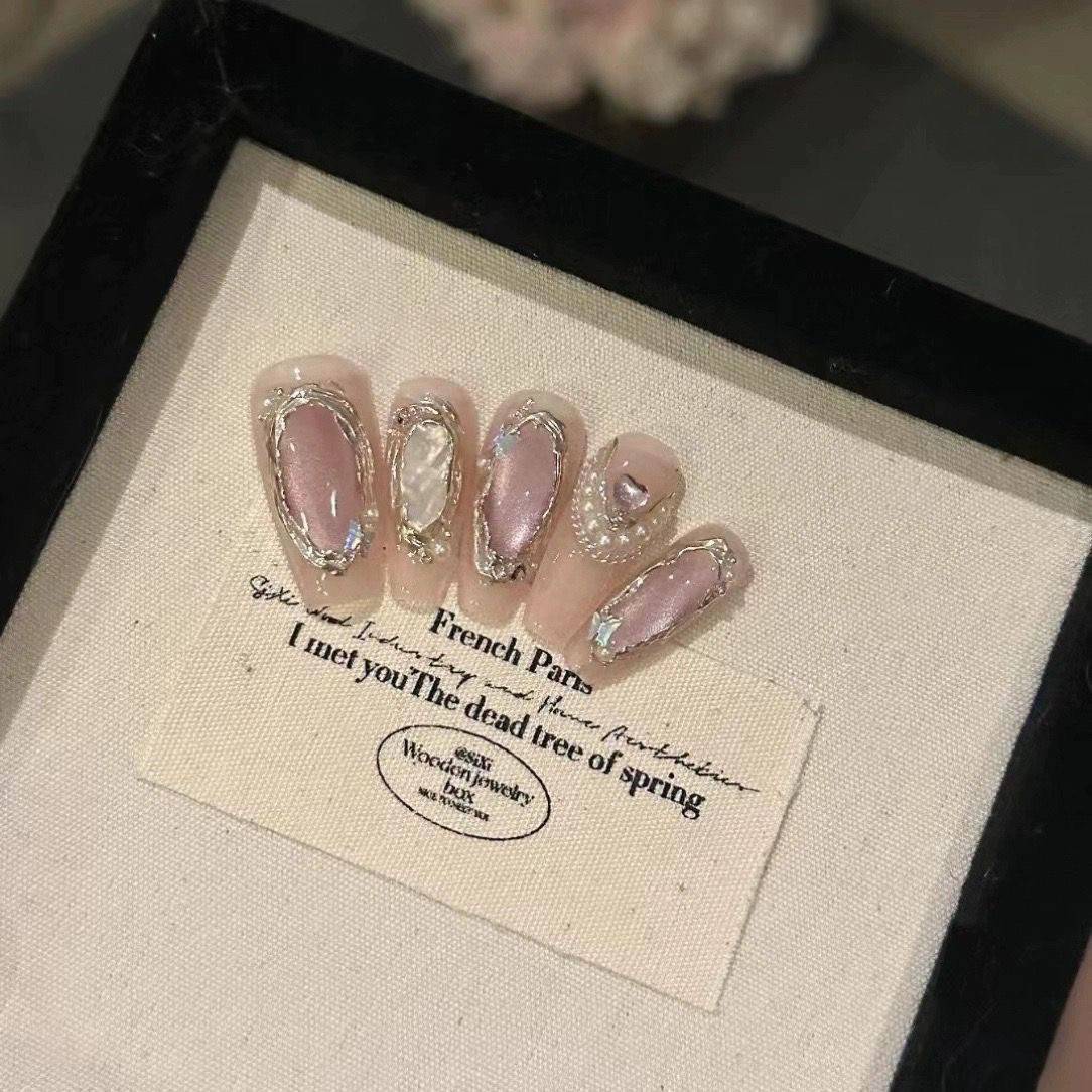 索马里海抖音爆款高端纯手工穿戴甲学生美甲贴片纯欲风猫眼可定制