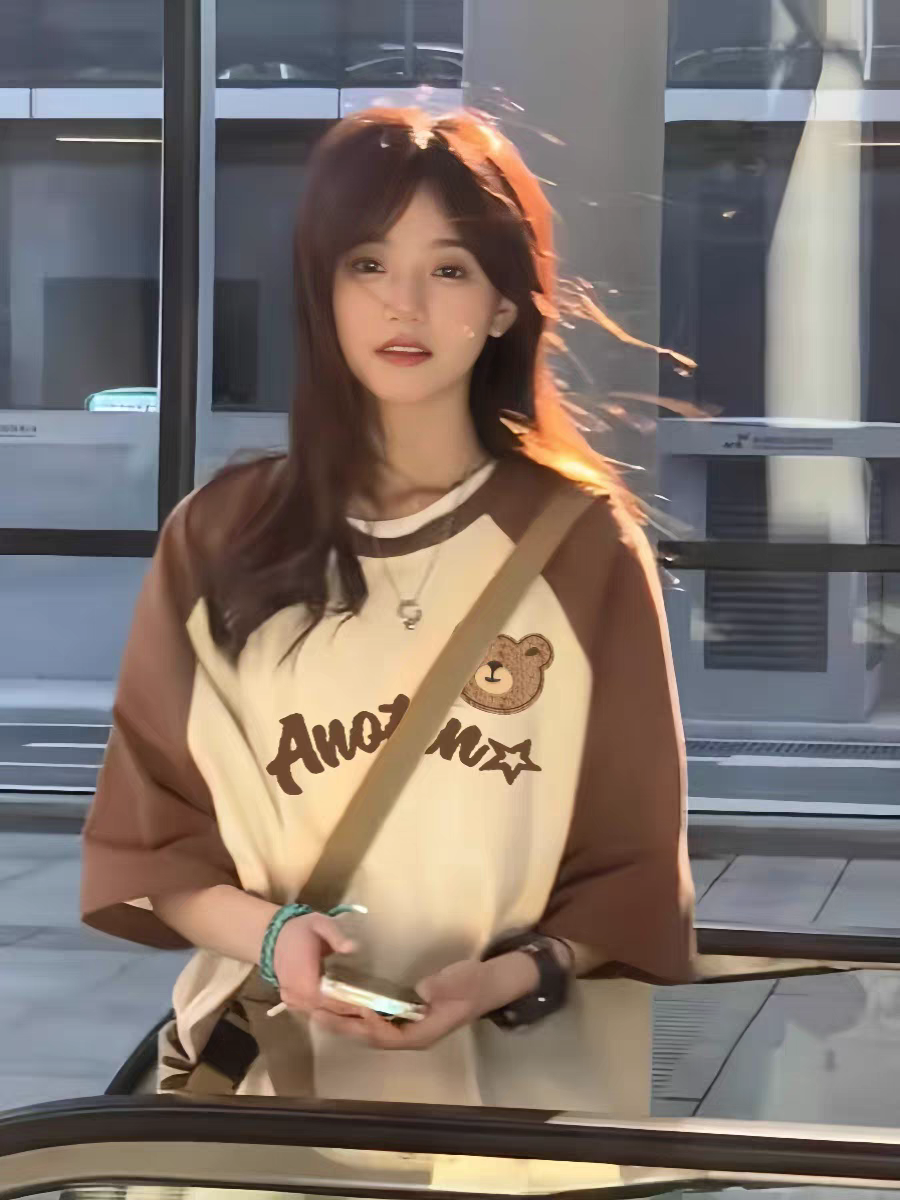 纯棉撞色短袖t恤女夏季2025年新款流行小衫森系上衣别致体恤ins潮