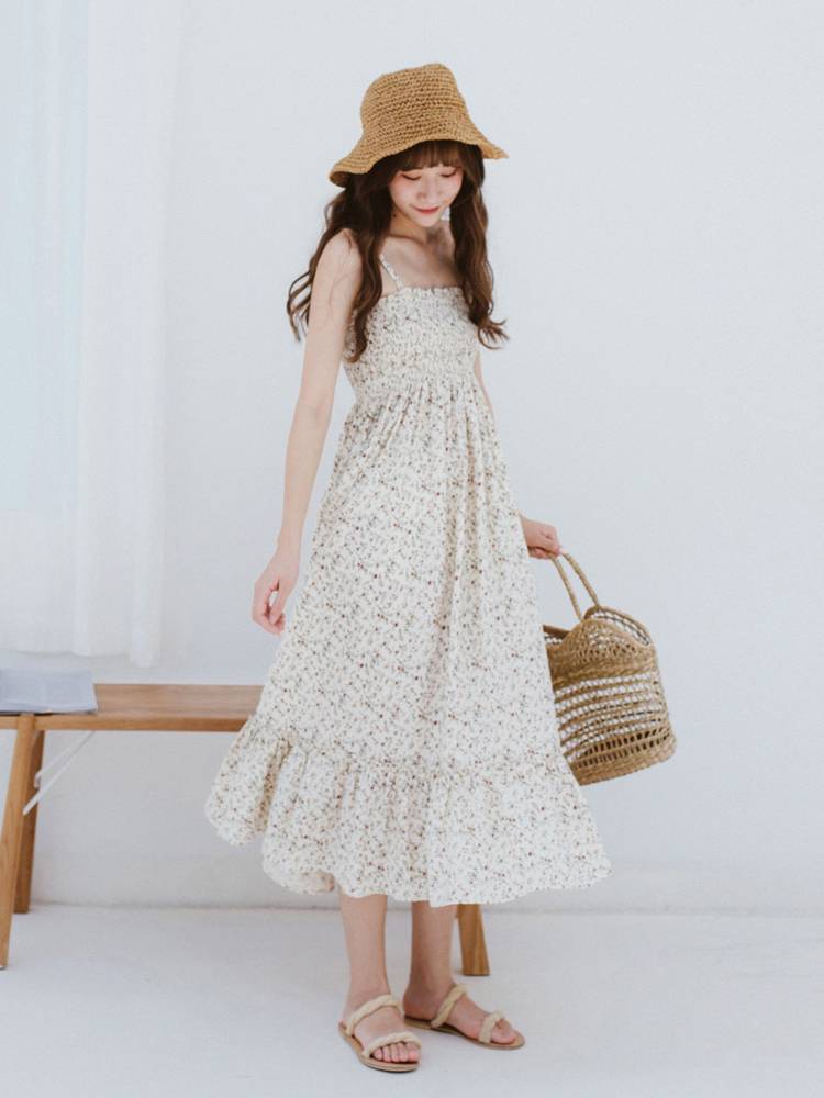 DORA碎花连衣裙2018夏小清新韩版中长款复古显瘦雪纺印花吊带裙女
