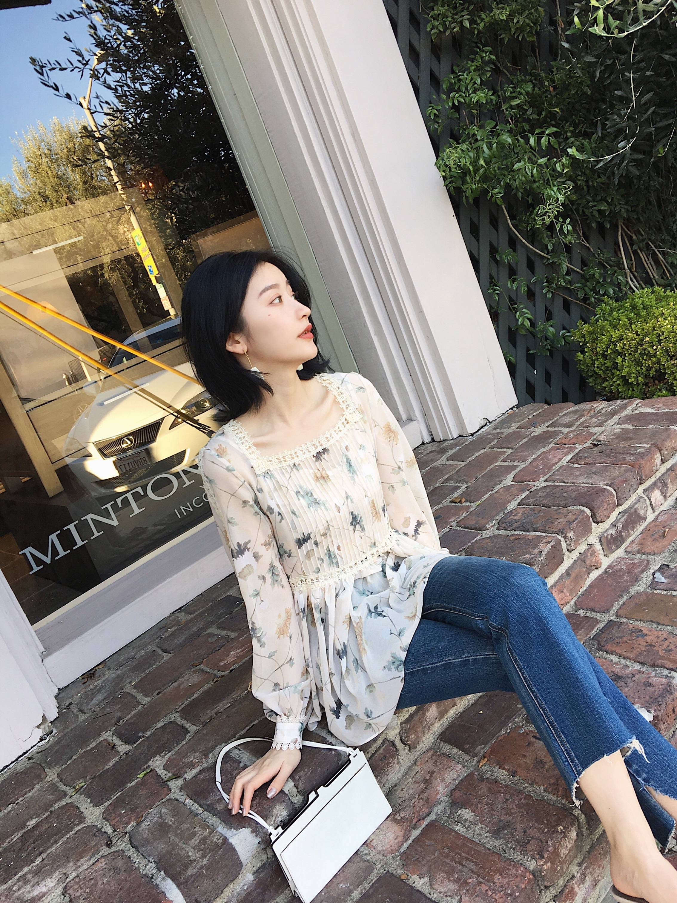 小宜定制YESWOMEN 温柔色系蕾丝碎花雪纺连衣裙+上衣
