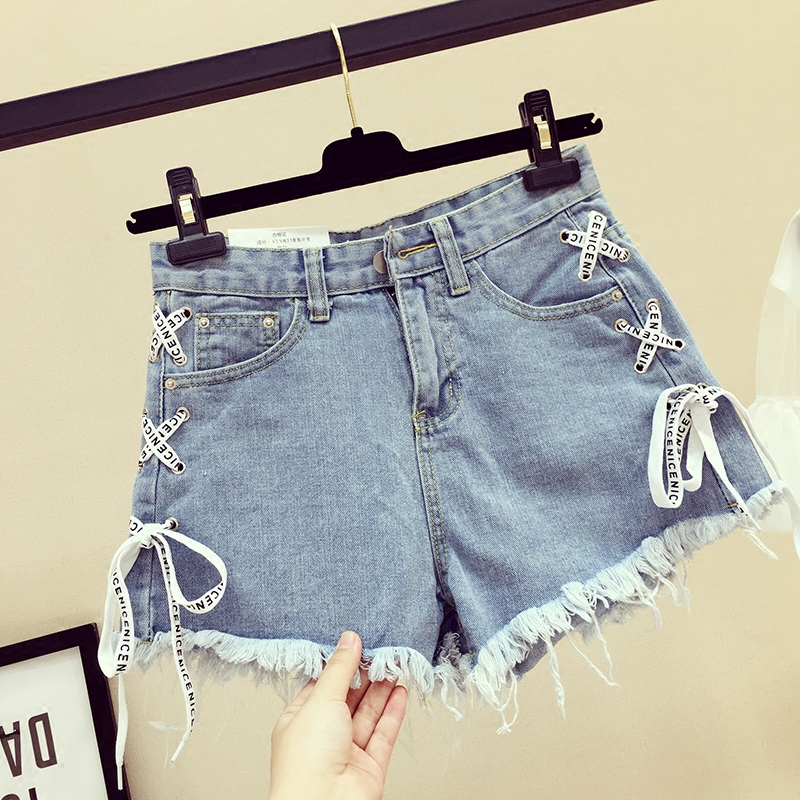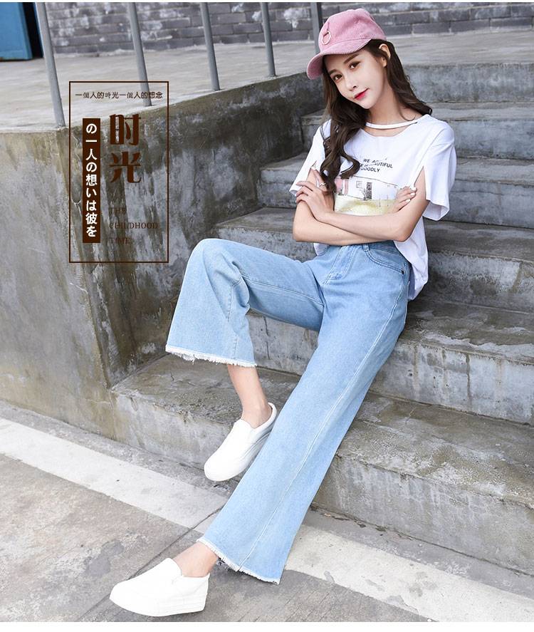 春秋高腰阔腿牛仔裤女宽松毛毛边浅蓝色软妹直筒九分裤子复古学生
