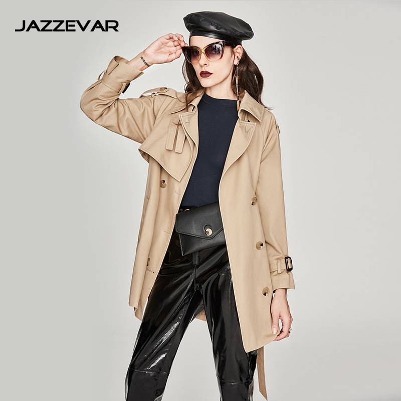 2019秋季新款品牌女装英伦气质纯色长袖西装领双排扣女式风衣外套