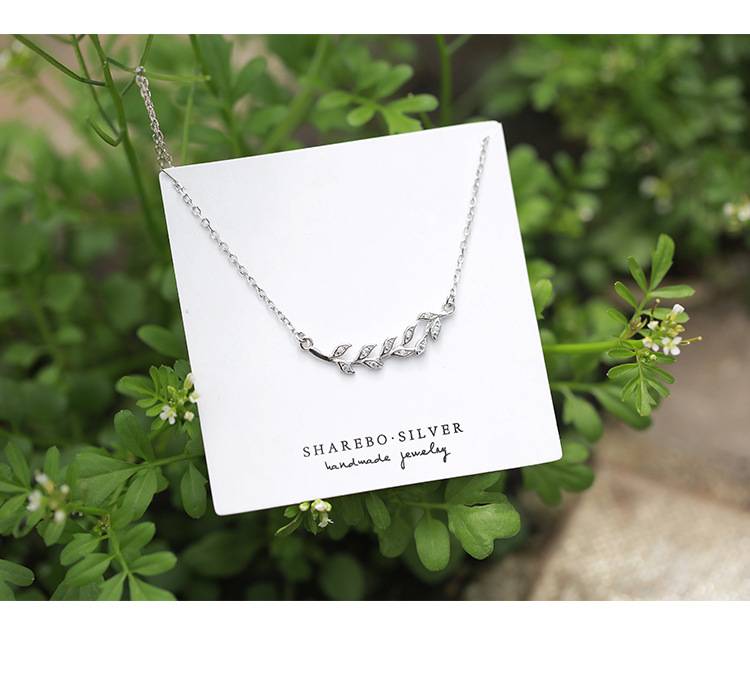 通体s925纯银橄榄枝树叶项链女韩版锁骨链