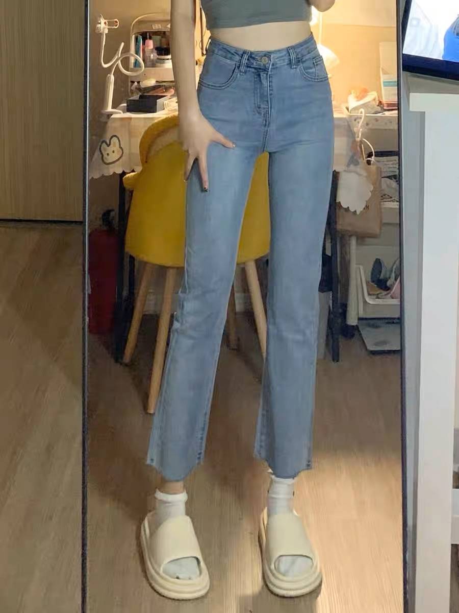 欧美辣妹风小个子裤子高街ins潮弹力牛仔裤女浅色直筒裤女烟管裤
