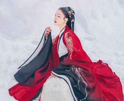 汉尚华莲传统汉服女装赤魂凤凰珠绣大袖褙子红黑渐变外披秋冬