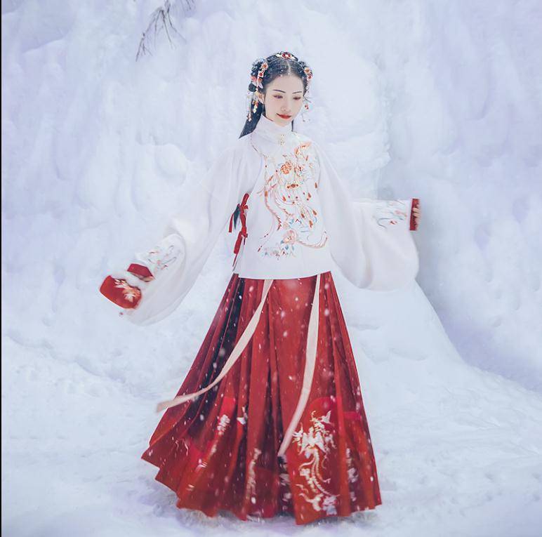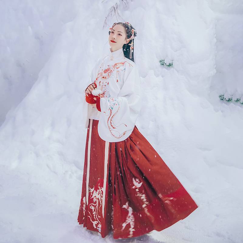 汉尚华莲传统汉服女装昭阳凤凰绣花立领斜襟上袄搭配马面裙日常冬