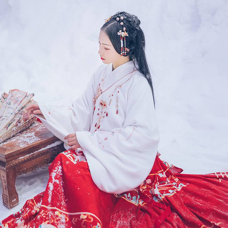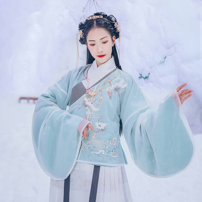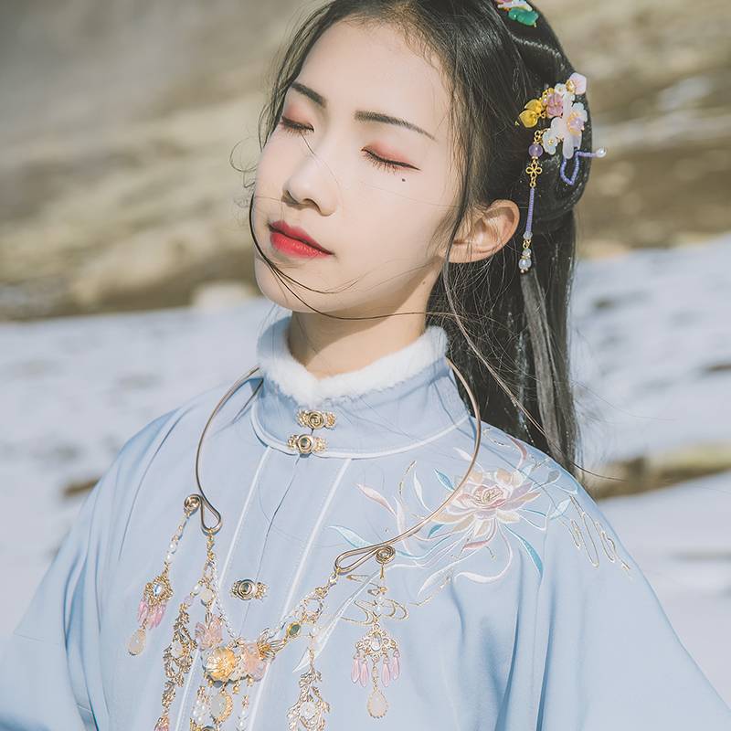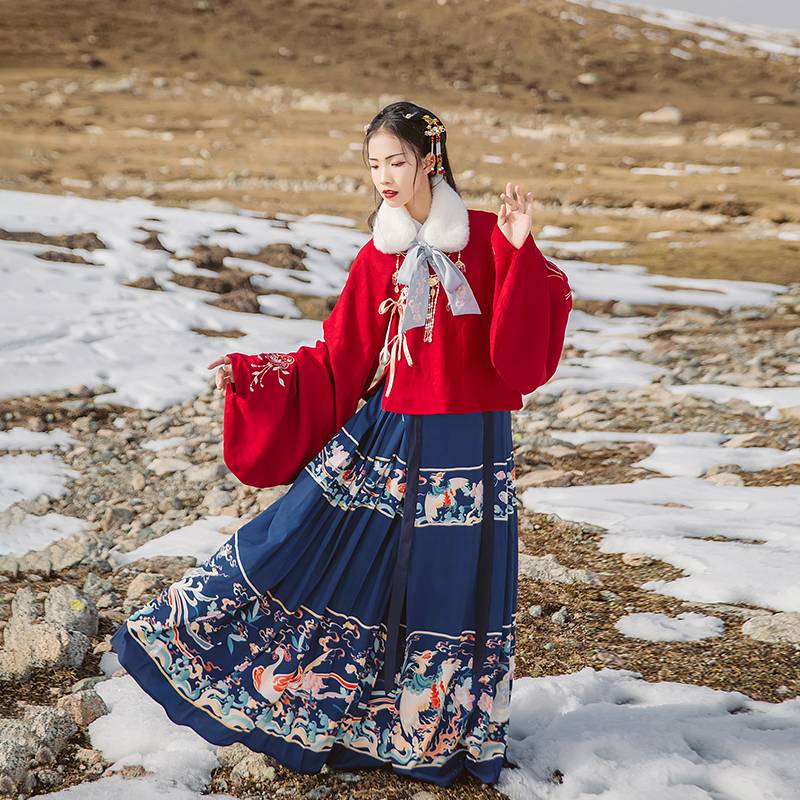 汉尚华莲洛玉传统汉服女装明制刺绣立领对襟袄裙日常秋冬款套装