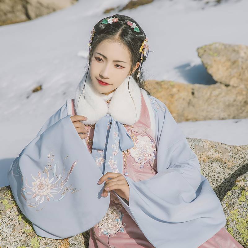 汉尚华莲传统汉服女装相思刺绣长比甲上衣保暖冬装日常搭配款外穿