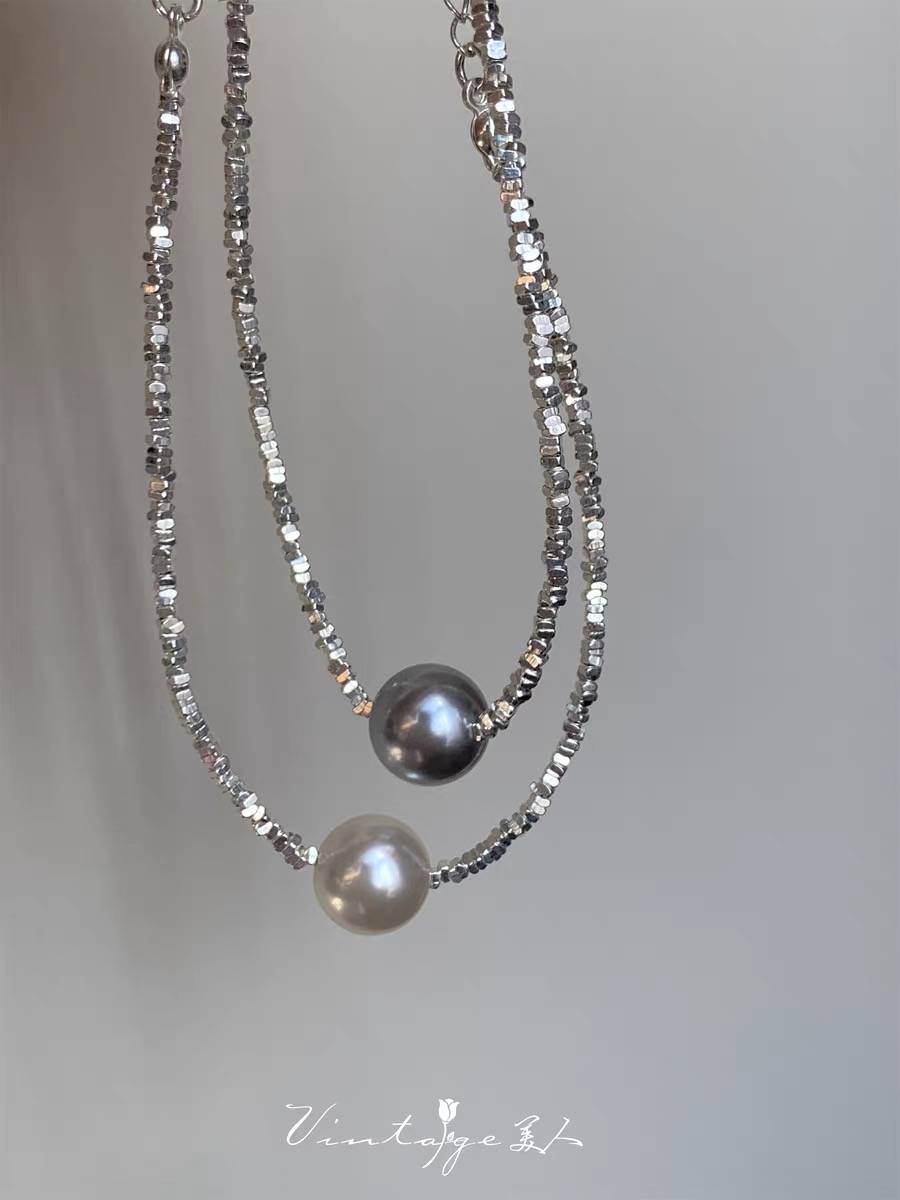 经典珍珠项链碎银子小众设计清冷感渐变锁骨链珠珠