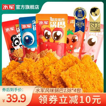 水军蟹黄咸蛋黄糯米锅巴网红解馋休闲办公室零食138g*4包组合装