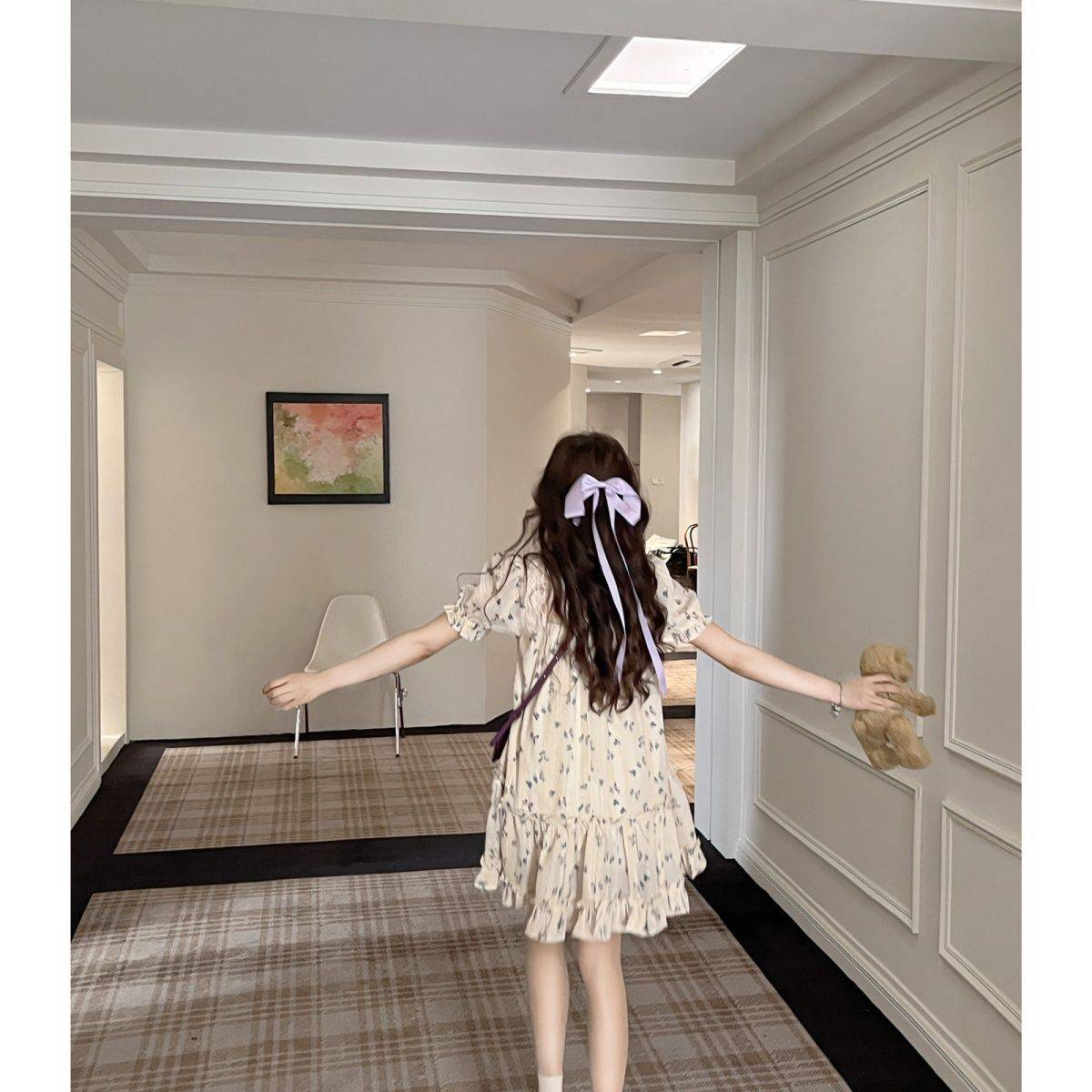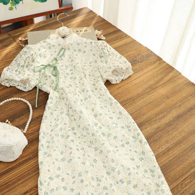 旗袍改良版连衣裙2023新款甜美森系碎花泡泡袖年轻款少女旗袍裙