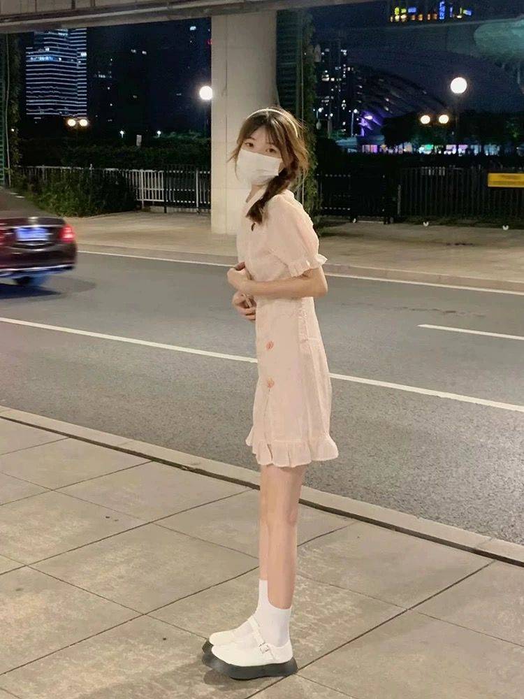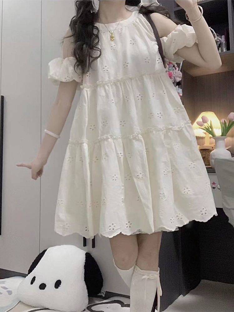 初恋小白裙甜美可爱风小个子日系泡泡袖露肩连衣裙夏日上新女学生