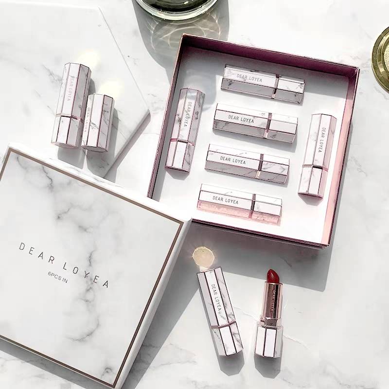 丽扬6支装 大理石口红套装生日套盒礼物ins超火高颜值唇膏抖音