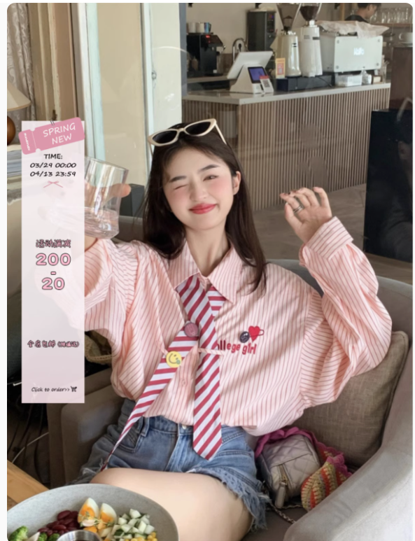 春装新款女装韩版宽松BF条纹衬衫女长袖上衣打底衬衫薄款