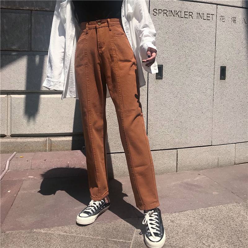 2020春夏新款批发松紧腰高腰牛仔裤女宽松直筒显瘦阔腿长裤