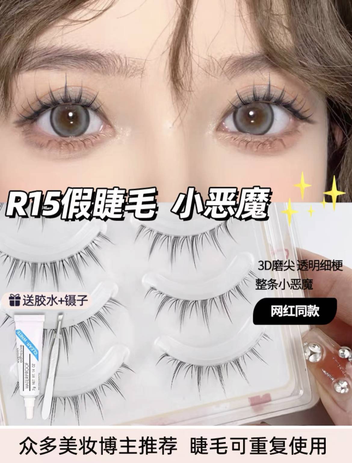 雪里里小恶魔假睫毛女自然仿真整条仙子毛透明梗漫画眼新娘妆专用