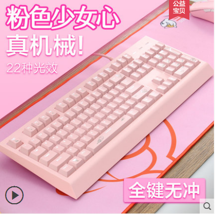 樱花粉色机械键盘黑轴青轴LOL吃鸡游戏电竞少女专用牧马人