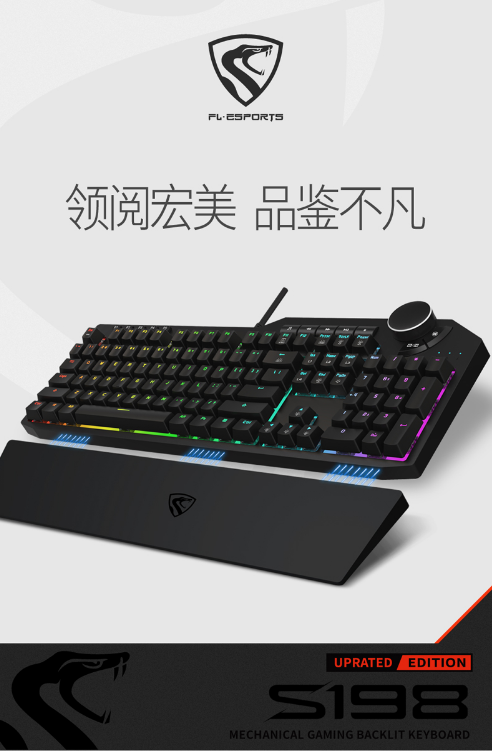 腹灵S198PRO机械键盘 RGB背光凯华BOX轴 多媒体宏编程 吃鸡CF电竞
