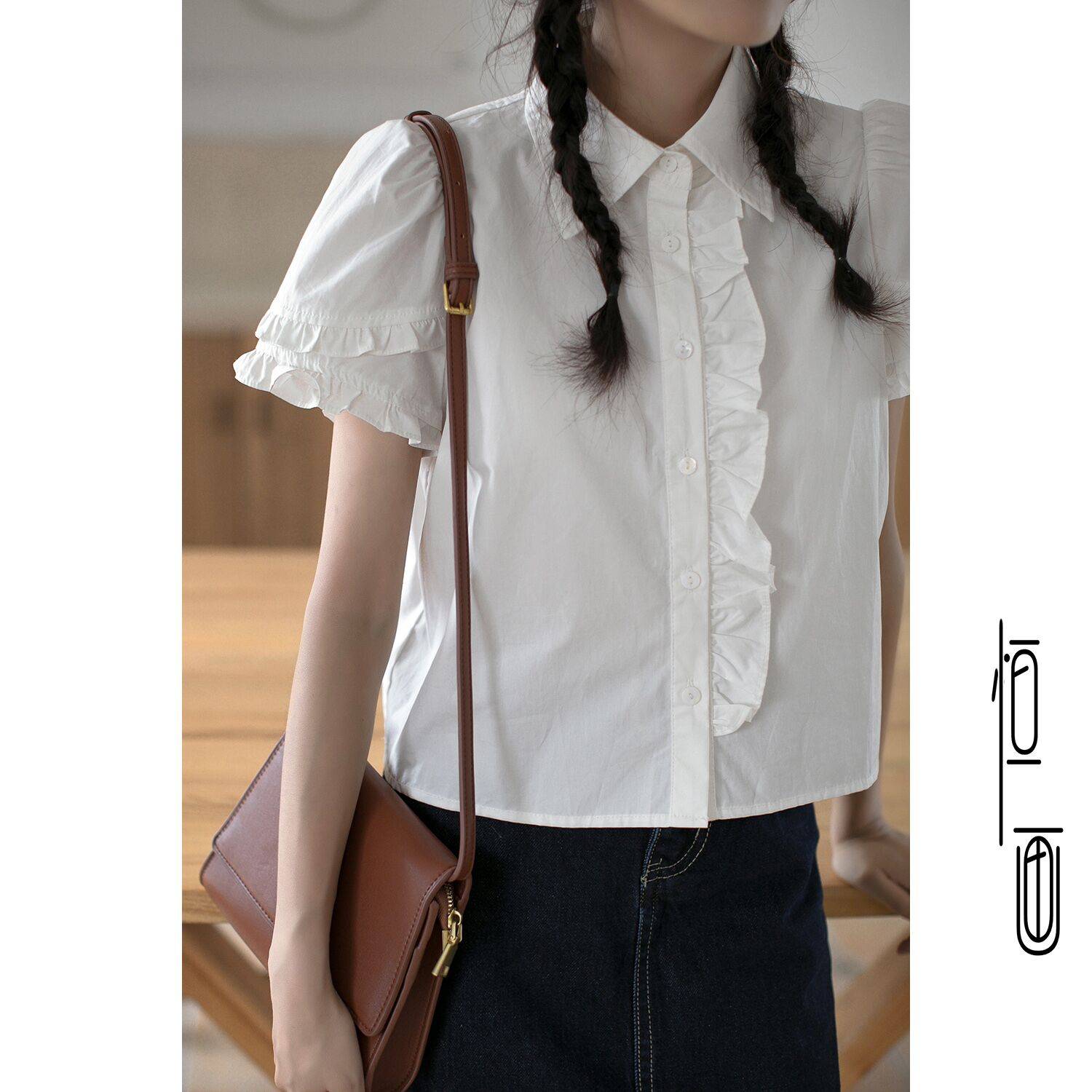 黑白格子不规则荷叶边V领吊带显瘦百搭不对称背心