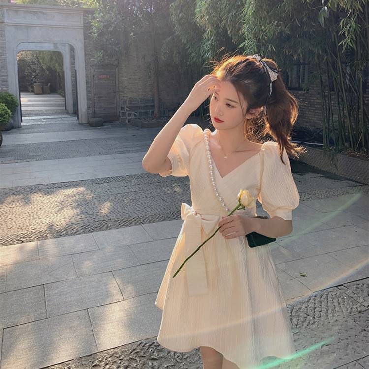 魅力超仙甜美泡泡袖连衣裙女装2021夏季新款温柔风初恋裙收腰裙子