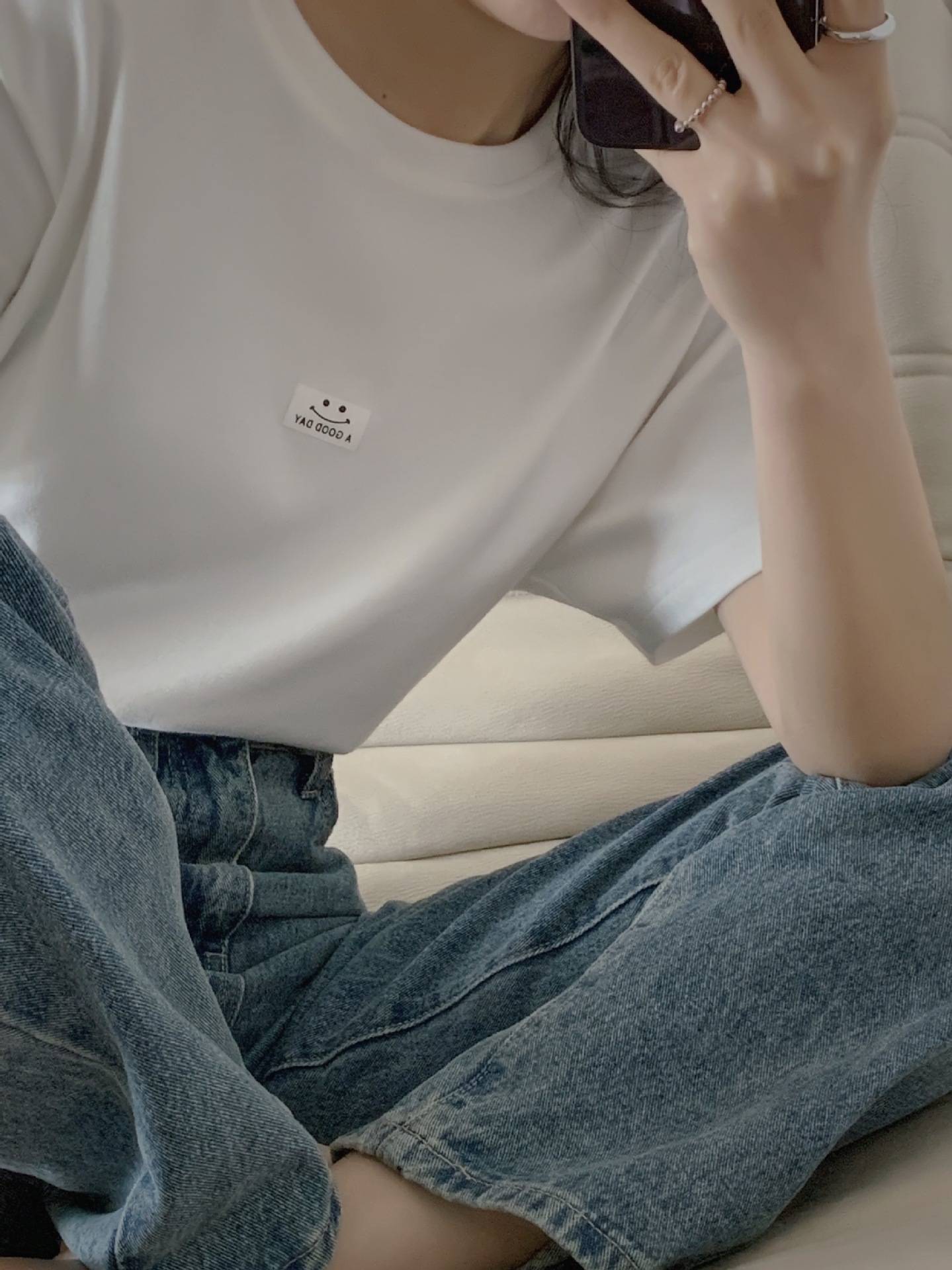杜小宅微笑好运T恤女圆领短袖2021春季新款棉韩版宽松学生上衣