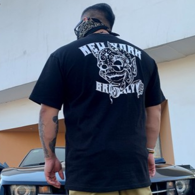 核爆炸西海岸匪帮chicano恶魔小丑重磅纯棉美版大码黑白短袖t恤男