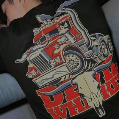 DW机车潮牌美式西部牛头野牛角卡车硬汉宽松大码粗犷风格T恤