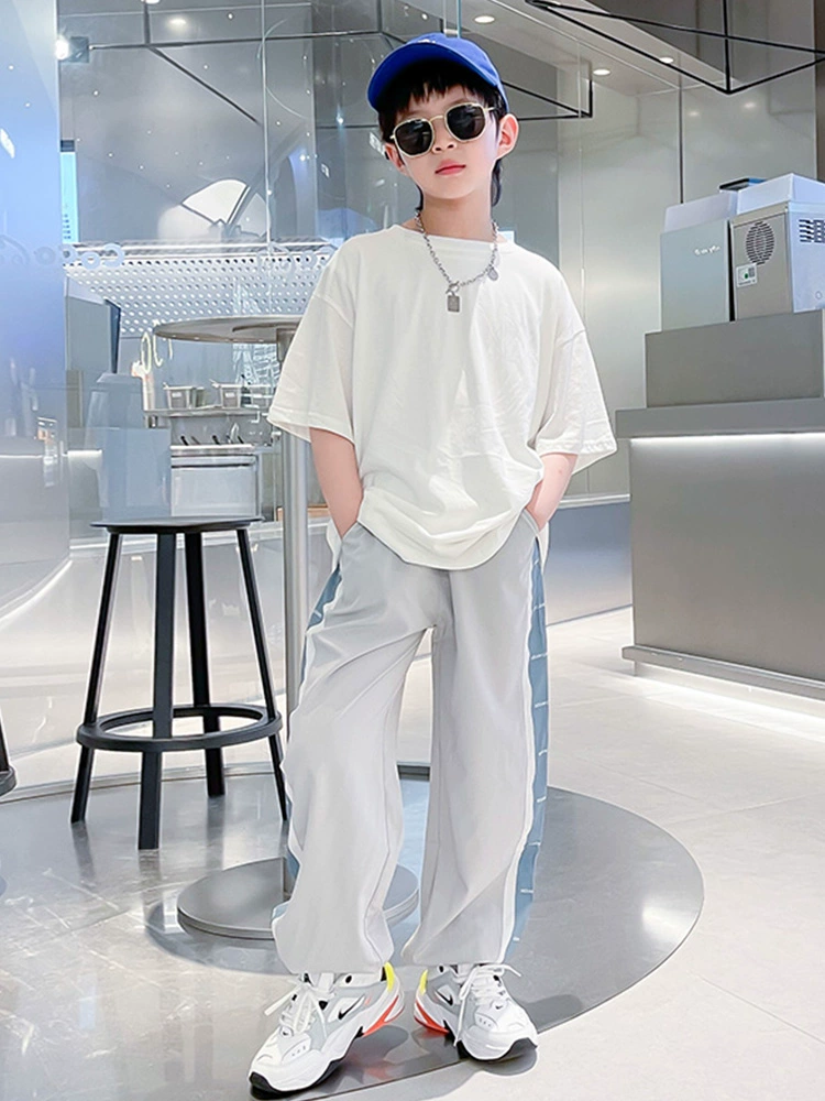 男童夏季浅色套装短袖长裤运动夏装潮帅气时髦的儿童网红炸街男孩