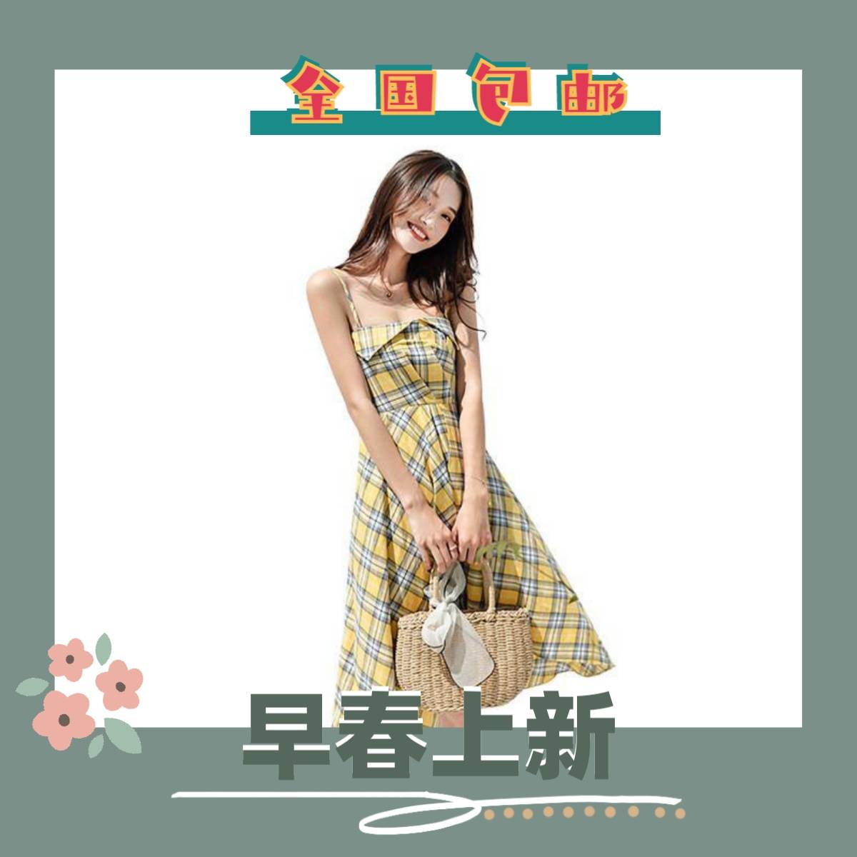 2019夏新款吊带连衣裙女学生韩版气质甜美森系小清新超仙格子长裙