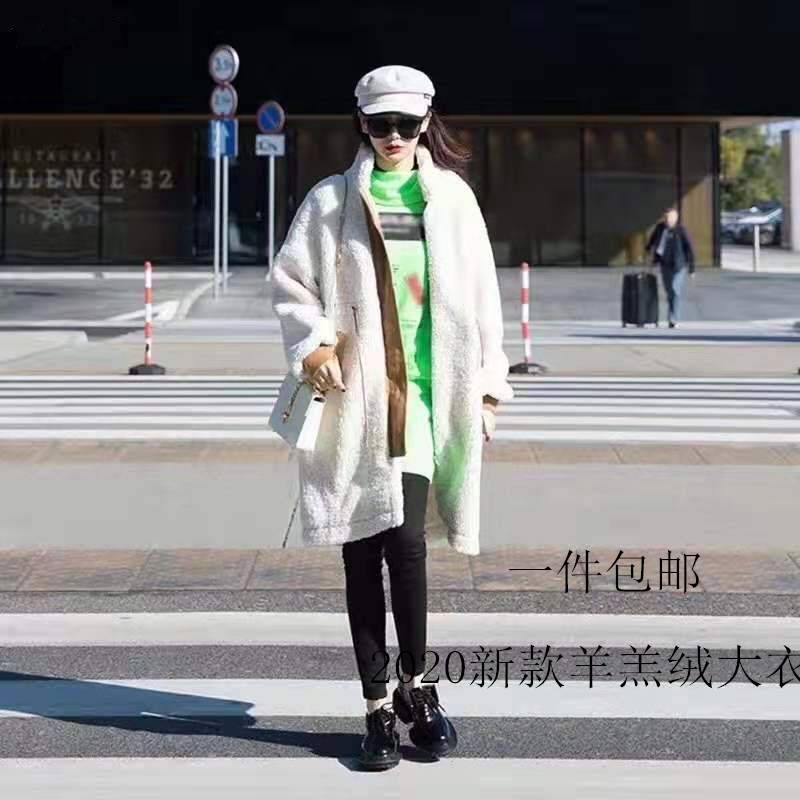 2020年新款宽松时尚流行保暖羊羔绒中长款棉服大衣明星同款包邮