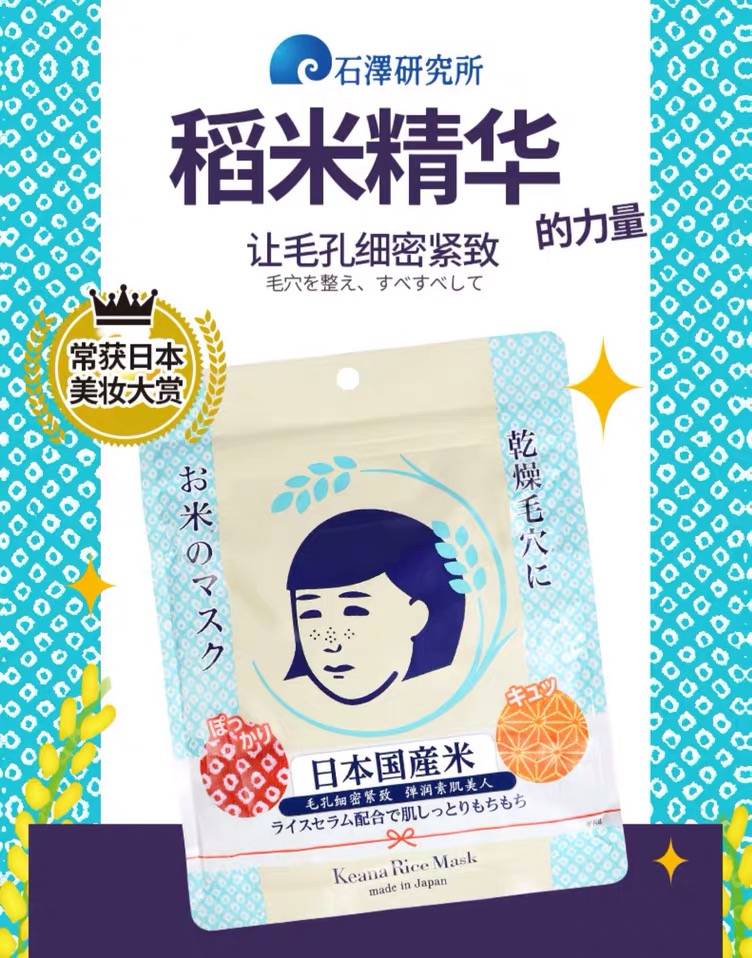日本石泽研究所/毛孔抚子毛穴抚子稻米大米面膜补水保湿细腻毛孔